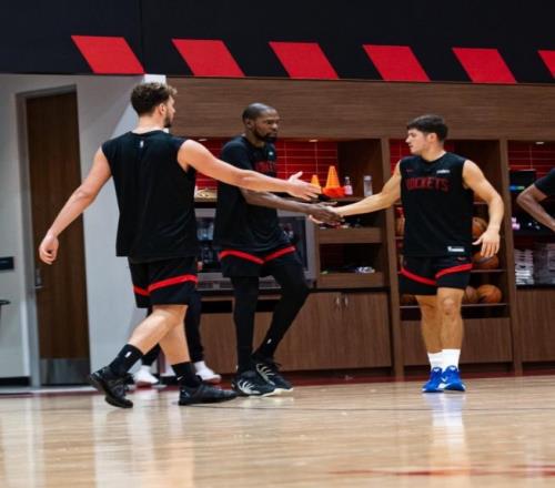 本场比赛火箭队又变阵了,他们的首发阵容不变,仍然是阿门、奥科吉、杜兰特、小史密斯和申京。第二阵容当中,火箭队本场比赛弃用了31岁的老将中锋克林特·卡佩拉。两位后卫谢泼德和戴维森带着老将中锋亚当斯出战,这三位球员组成了火箭队的第二阵容。