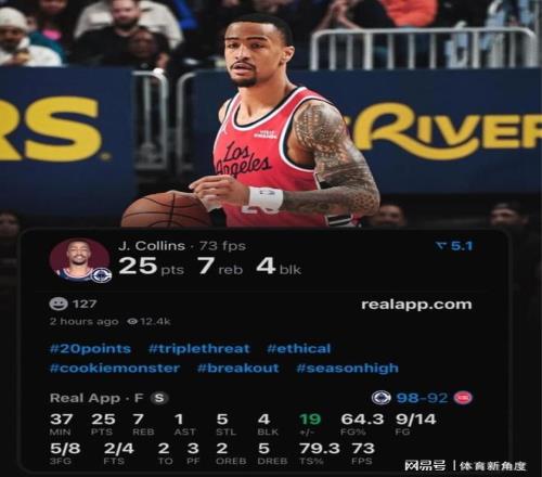 科林斯刚加盟快船队时,只能担任替补角色。不过,在打了九场比赛之后,他便被正式提上首发。进入2026年后的里,他的表现始终十分出色,投篮总共57次命中41次(命中率大约为72%),其中三分球24投16中(命中率大约为67%),已然成为快船队当前除伦纳德之外,最为可靠的火力输出点。