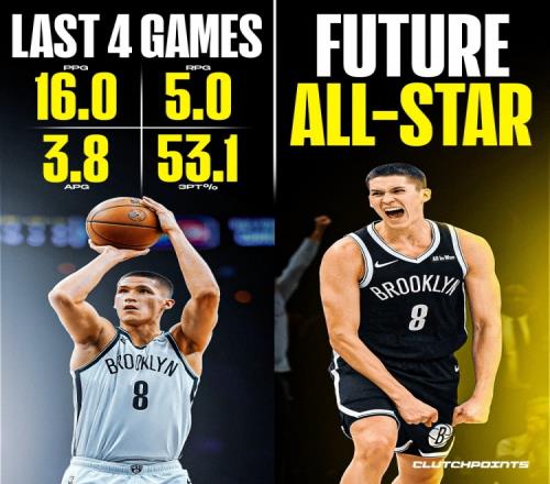 体育播报1月11日宣 美媒ClutchPoints晒出了篮网新秀杰明近四场的数据。