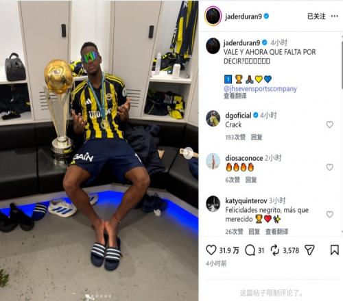 杜兰赛后更新社媒动态,晒出与奖杯的合照,配文回击质疑:“值了!现在还有什么要说?”