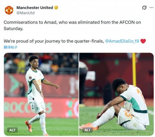 曼联官方社媒晒出阿玛德在国家队的照片,并写道:“向阿玛德致以慰问,他所在的球队在周六的非洲杯比赛中出局。”