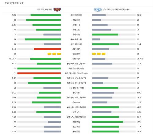 90分钟战报:西汉姆联11女王公园巡游者,萨默维尔、科内破门