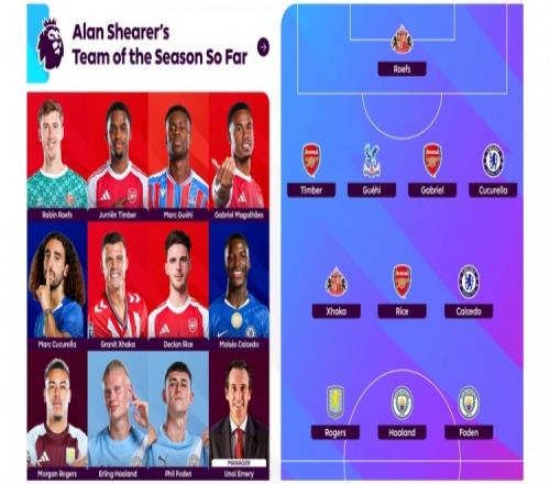 体育播报1月12日宣 英超传奇阿兰·希勒在近日接受采访,评选了一套自己心目中的英超赛季至今最佳阵容,阿森纳3将、切尔西曼城各2人。
