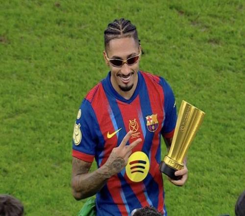 西班牙超级杯决赛巅峰对决开启,比赛上半场节奏极快,第36分钟,费尔明前插送出关键一传,拉菲尼亚冷静推射破门,巴萨1-0领先。
