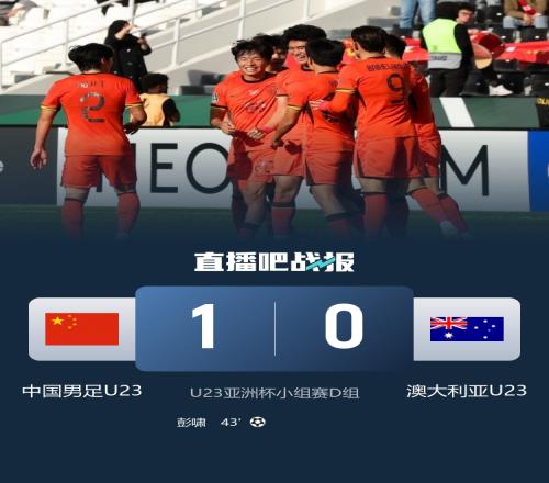 体育播报1月11日宣 U23亚洲杯第二轮完赛一场,中国U23凭借彭啸的进球,1-0力克澳大利亚U23。中国U23也在2轮过后...